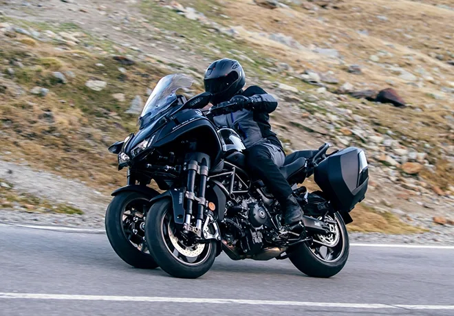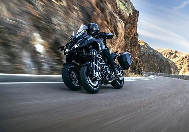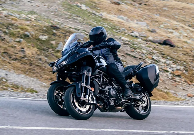 Le comportement dynamique est renforcé par le système LMW (Leaning Multi-Wheel), qui permet d'exploiter efficacement la puissance moteur dans les virages en assurant une meilleure adhérence de l’avant, même à rythme soutenu. Grâce à cette configuration, la NIKEN GT propose une approche différente de la performance : moins centrée sur la brutalité mécanique que sur l’efficacité globale, la stabilité et la sécurité en courbe.