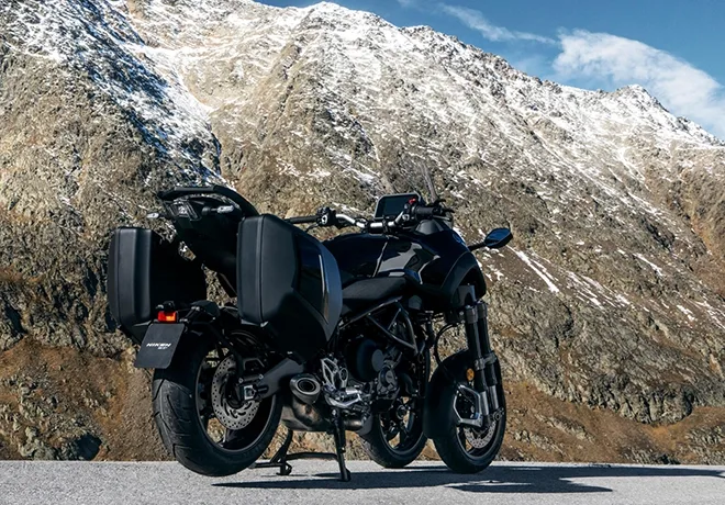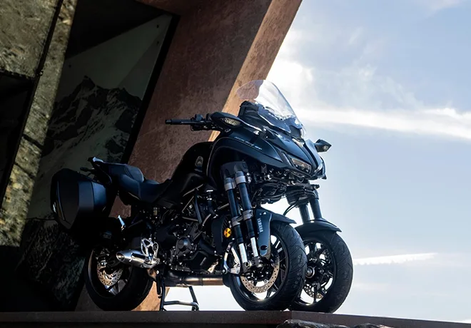 Le tarif de la NIKEN GT débute à 18.999€ (prix indicatif, pouvant varier selon le pays, les taxes locales et les options choisies). Ce prix inclut une dotation complète de série : bulle réglable, valises latérales rigides, tableau de bord TFT connecté, régulateur de vitesse, système LMW à double roue avant inclinable, et moteur CP3 de 890 cm³ conforme à la norme Euro 5.