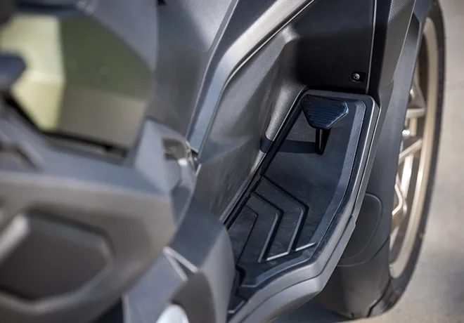 Grâce à sa transmission PTM (Power Transmission Matrix) de dernière génération, renforcée par de la fibre de carbone, le scooter 3 roues Kymco CV3 réduit les bruits de friction et assure une transmission optimale de la puissance.