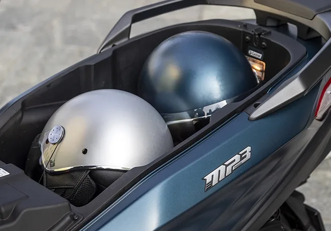 Côté sécurité, un antivol électronique ou mécanique est disponible en option, tout comme des coques latérales sport pour renforcer le style. Enfin, une ligne de casques jet Bluetooth et de gants assortis vient compléter l’offre pour une expérience de conduite premium et stylée. Le MP3 530 hpe Exclusive se personnalise ainsi selon les besoins et envies, sans compromis sur l’élégance ou la technologie.